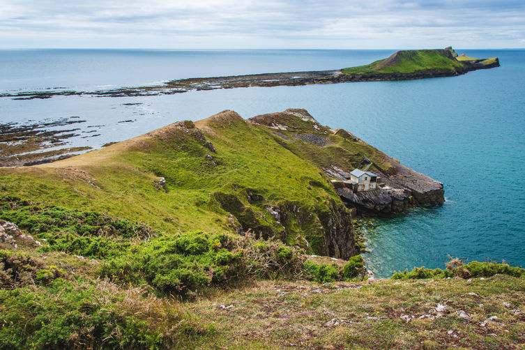 A walk alongside Rhossili Bay to Worm's Head in the Gower in Wales